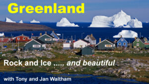 In his third and final lecture, Tony Waltham will take us to Greenland, an Arctic wilderness he calls “fascinating, spectacular, and truly beautiful.” Is has recently become a place of great interest to US citizens, since our current president has vowed to acquire it, although it is—apparently happily– an autonomous region of Denmark. Largely covered by a huge and featureless ice sheet, the coastal margins of Greenland present glorious landscapes of bare rock and sparkling glaciers. A scatter of small and isolated communities of wooden houses painted in bright colors stand against backdrops of jagged mountains and passing icebergs. Few people venture onto the “Inland Ice,” a vast and alien environment. At lower altitudes, there are farms on green pastures around some of the southern fjords, where the first Viking settlers arrived and called it a “Green Land.” Further north, the dominant terrain type is bare rock. In the discussion, we may learn why the US should suddenly want to take over this enormous and mysterious land mass.